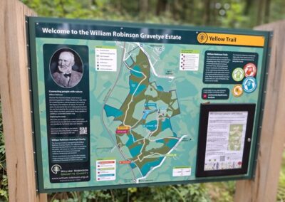 - Continue in same direction across the course to pick up a sign for a FP signing VW. Keep R at all times, on the edge of wood on a small path with houses on R.