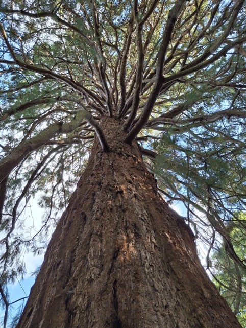 - Continue along FP with hedge on R to reach gate. Go through and continue straight, ignoring tracks to L and R. Descend to Ardingly Brook. Go through gate at foot of a giant redwood. Pick up boardwalk then cross several footbridges. Go steeply uphill before turning L at a gate and follow the edge of field, climbing steadily to road.