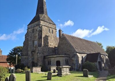 - Keep Norman St Margaret’s Church, constructed from local sandstone, on L. On R you will see the 15th Century Manor house and shortly after that the 15th Century timber framed Priest House standing in a traditional cottage garden. The house was built by the Priory of St Pancras in Lewes but was seized by Henry VIII following the dissolution of the monasteries. Subsequent owners included Thomas Cromwell, Anne of Cleves, Mary I and Elizabeth I. It is now furnished with 17th & 18th century country furniture and domestic objects. The resident curator gives tours of the house and garden upon request (March – October).